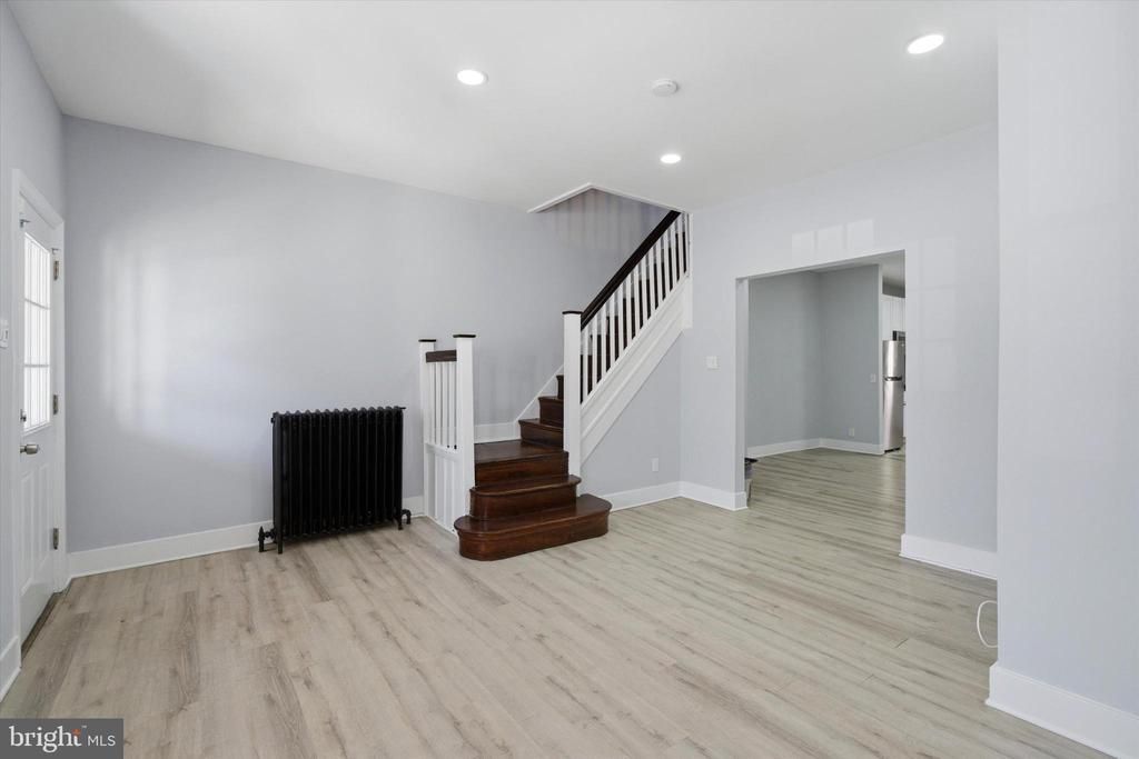 Step into this beautifully renovated 3-bedroom, 1.5-bath brick rowhome offering a perfect blend of modern updates and everyday functionality. 2041 Church Ln is move-in ready and thoughtfully designed for comfortable living. A welcoming front porch leads into a bright, open-concept main level featuring luxury vinyl plank flooring, recessed lighting, and a seamless flow between the living and dining areas ideal for both relaxing and entertaining. The updated kitchen is equipped with wood cabinetry, granite countertops, stainless steel appliances, and flexible space for an island or additional seating. A convenient half bath completes the first floor. Upstairs, you’ll find three well-sized bedrooms with great natural light and ample closet space, along with a tastefully updated full bathroom. The basement is clean and dry, offering excellent storage or potential for future finishing. Out back, a private concrete patio provides the perfect space for outdoor gatherings or quiet evenings. On-street parking is readily available. With its updated features and functional layout, this home is ready for its next owner.